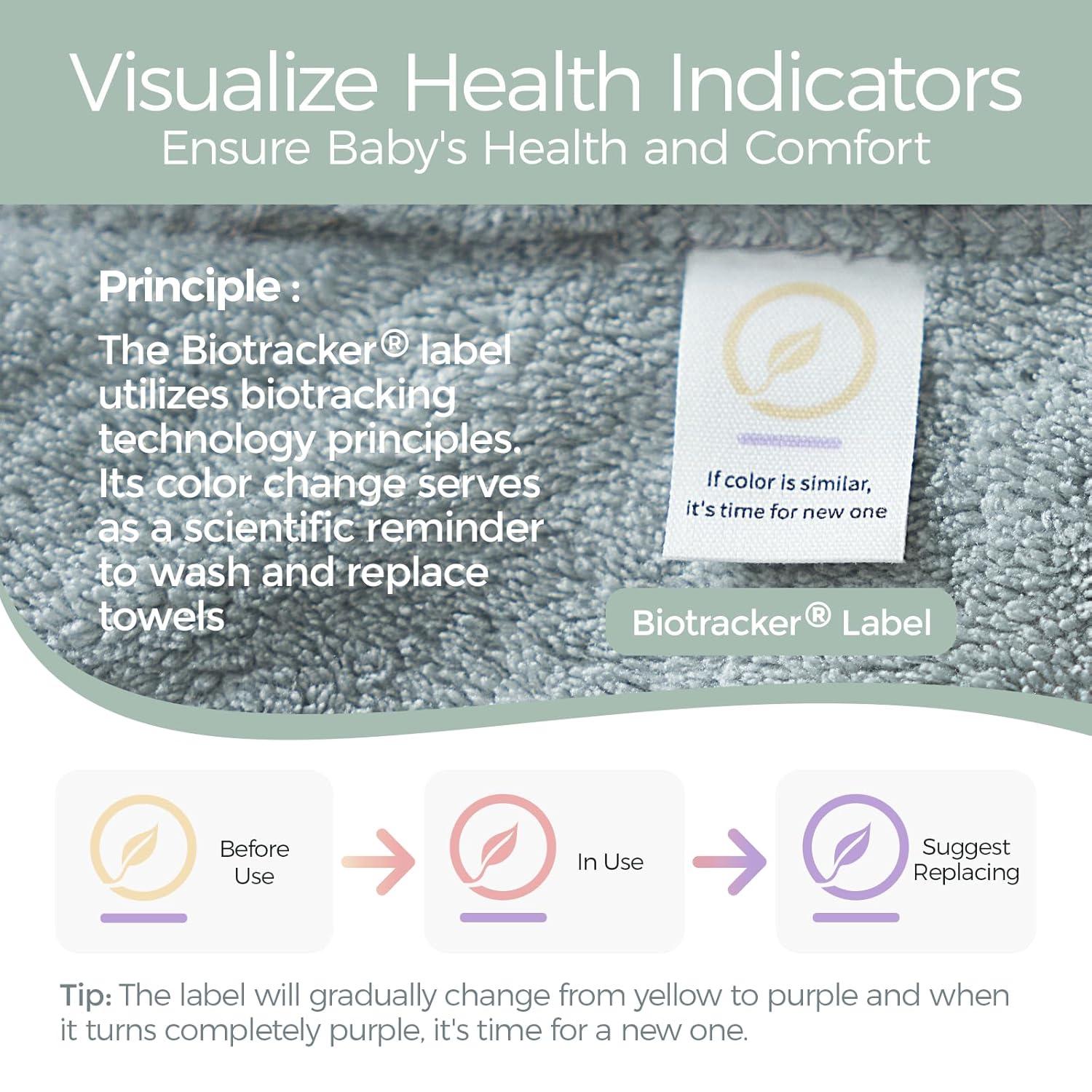 [The First to Pioneer Health Concept, Protecting Your Baby's Growth] Momcozy baby towel for newborn comes with an innovative health indicator label that uses advanced tracking technology to monitor it's health condition. It reminds you to wash and replace towels scientifically, providing a safe and healthy environment