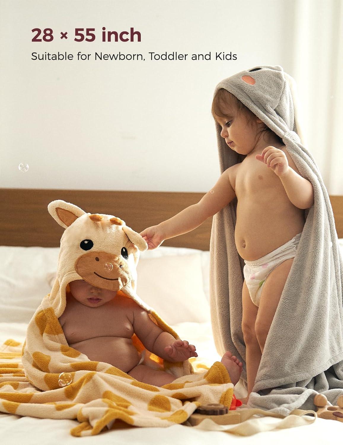 Momcozy Baby Bath Towels with Visualize Health Label – Ultra Soft & Absorbent Coral Fleece Hooded Towels for Newborn, Infant, Toddler (0-36 Months) Bath Essentials (Large Size,2 Pack)(Giraffe and Rabbit)
