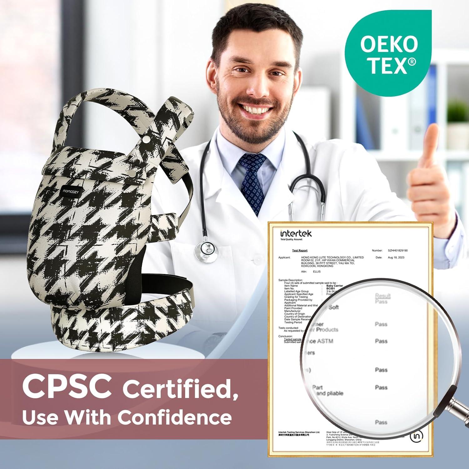 Momcozy Baby Carrier, Ergonomic, Cozy and Lightweight Carrier, Effortless to Put On, Ideal for Hands-Free Parenting, Enhanced Lumbar Support, Geometry(Cotton-Houndstooth)