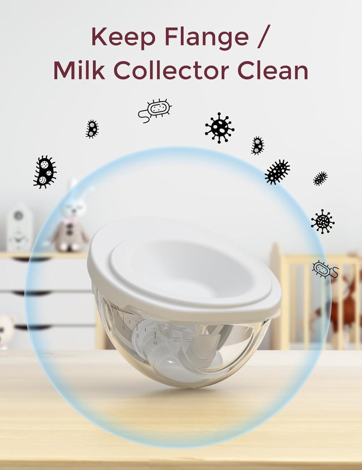 Stand-Up Milk Bowl Design: The stand-up milk collector simplifies pumping and pouring, making it easier to transfer milk into milk bags or bottles without spills.