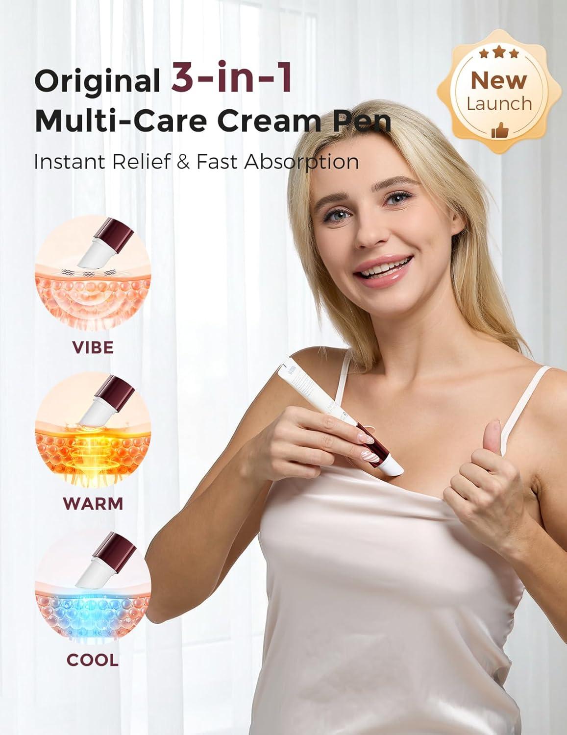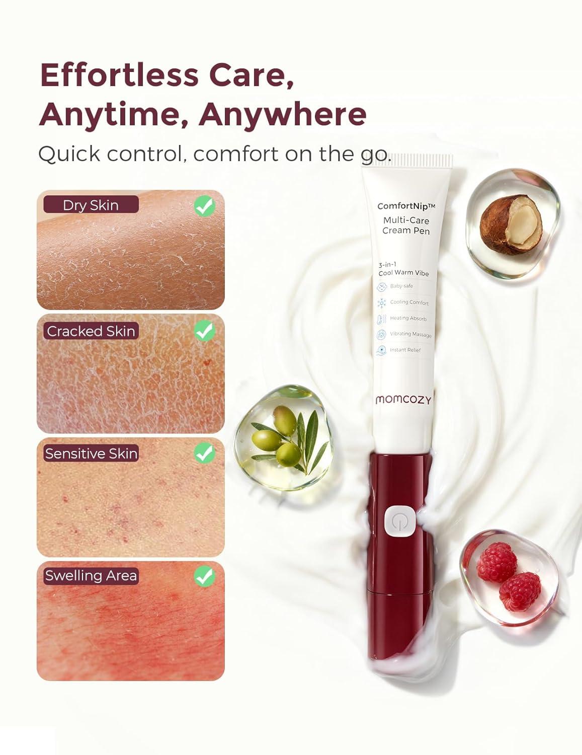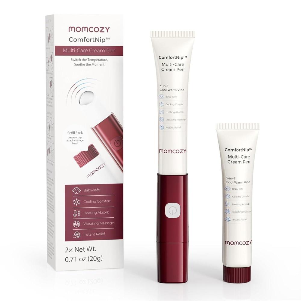3-in-1 Smart Care Kit — Heat/Cool/Vibe with Extra Refill Cream: This 1+1 combo includes the 3-in-1 Heat/Cool/Vibe Nipple Massager Cream Pen plus one extra nipple cream refill. Gentle heat enhances absorption, cooling relieves nipple pain and cracks, and soft vibration stimulates lactation—covering all breastfeeding and postpartum care needs in one convenient set.