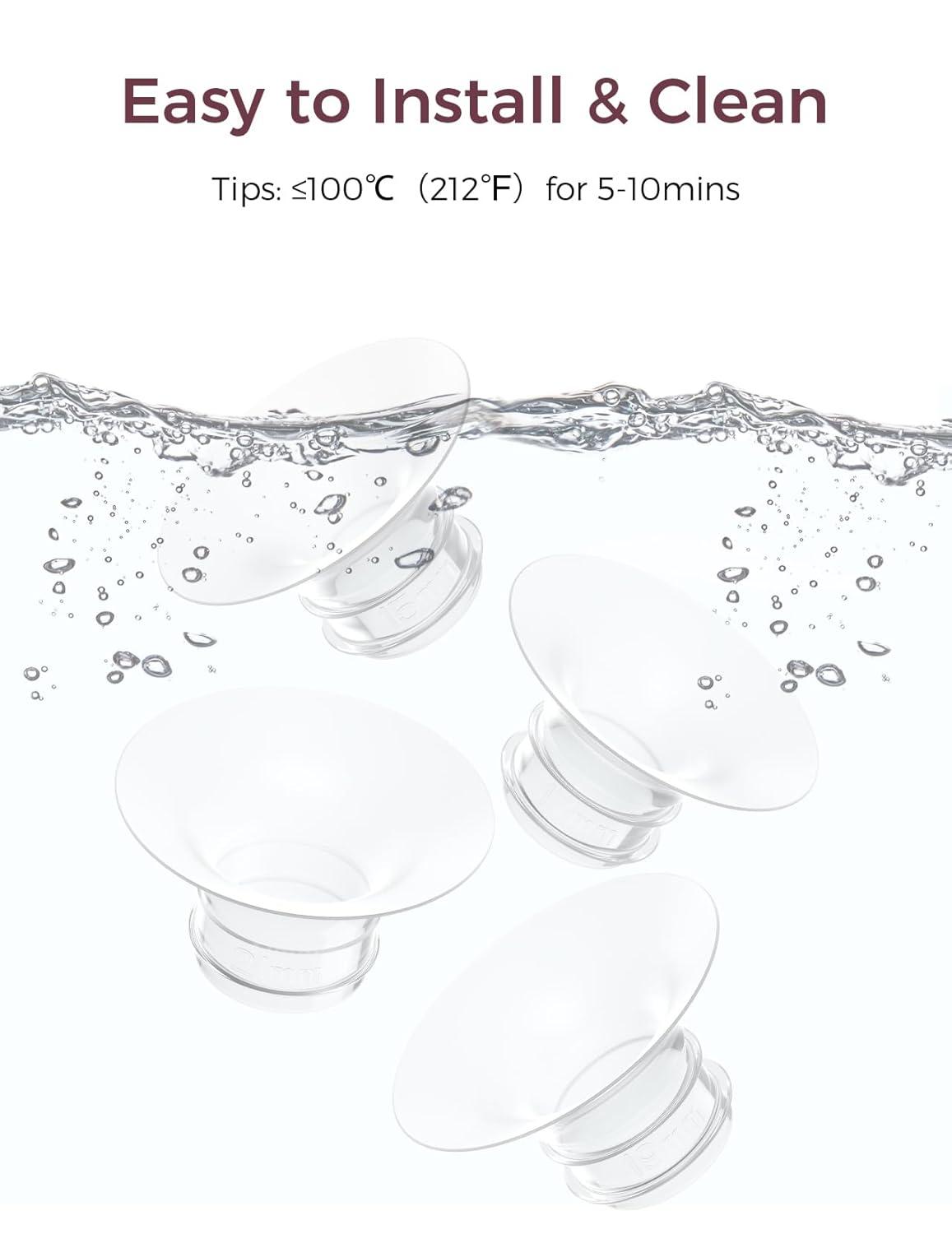 The authentic Momcozy wearable breast pump double-sealed flange 27mm accessories are suitable for use with Momcozy M5. Original accessories and an upgraded double-sealed flange increase the seal and grab every drop of milk for a better breast-pumping experience.