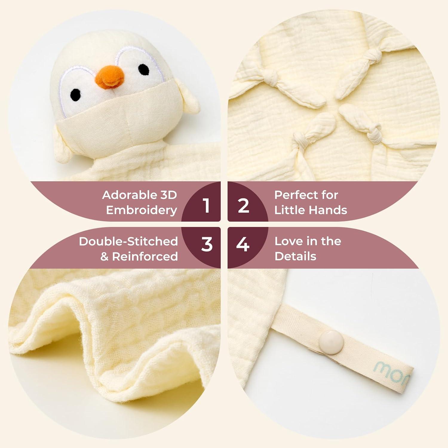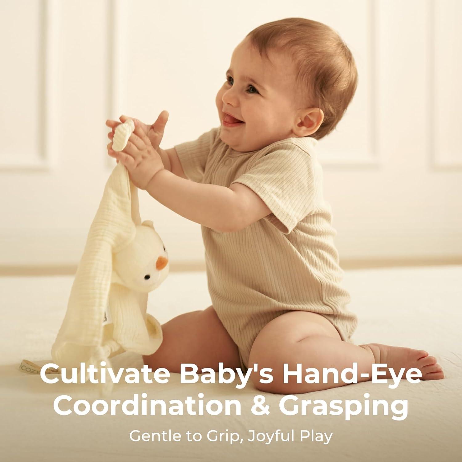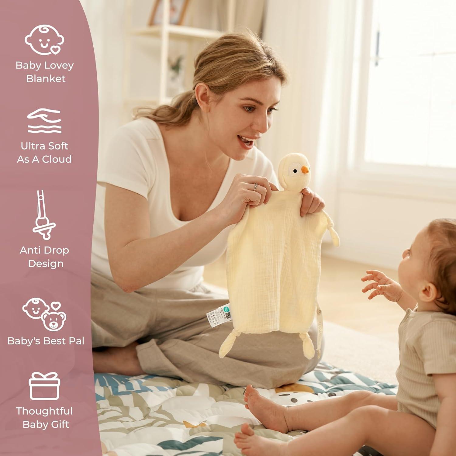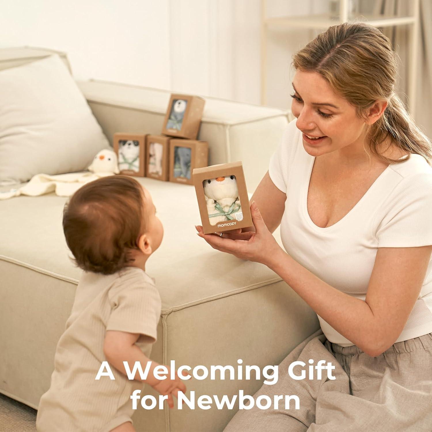 [ Premium Safety & Cloud Softness] Momcozy Loveys are Crafted from 100% cotton muslin with OEKO-TEX certifications, it is a cloud-like touch that babies instinctively adore. Like a mom's hug that comforts baby anywhere, easing anxiety in new places