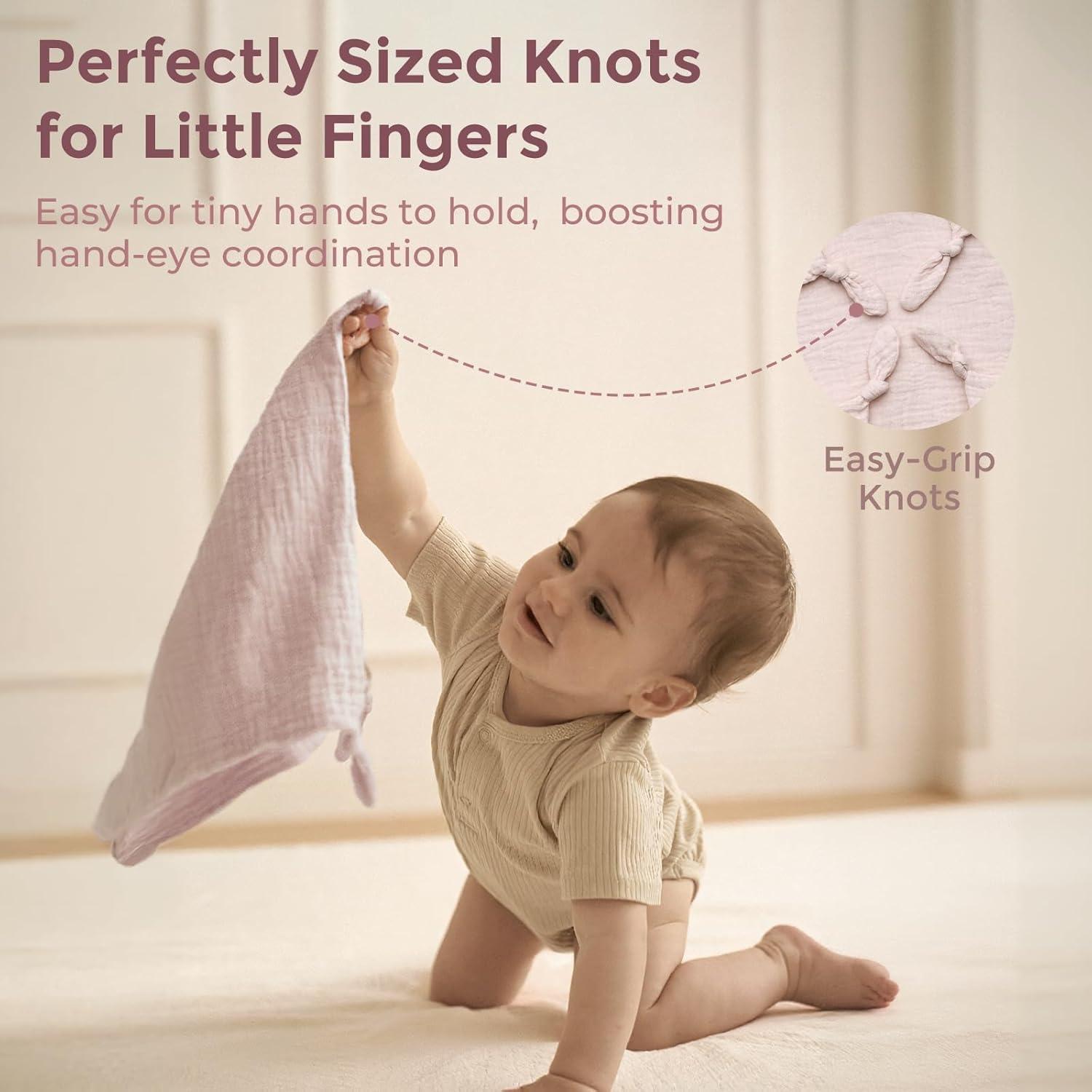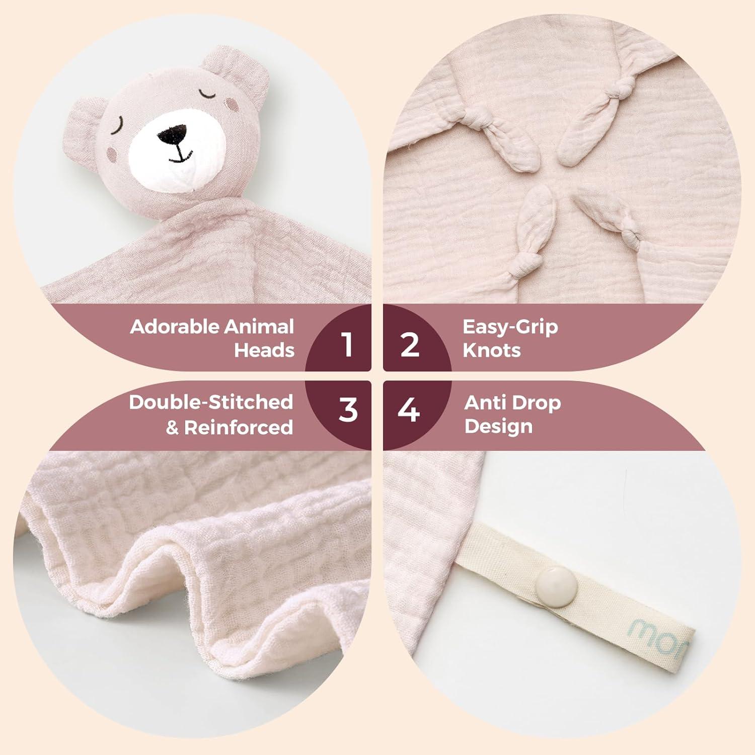 [ Premium Safety & Cloud Softness] Momcozy Loveys are Crafted from 100% cotton muslin with OEKO-TEX certifications, it is a cloud-like touch that babies instinctively adore. Like a mom's hug that comforts baby anywhere, easing anxiety in new places