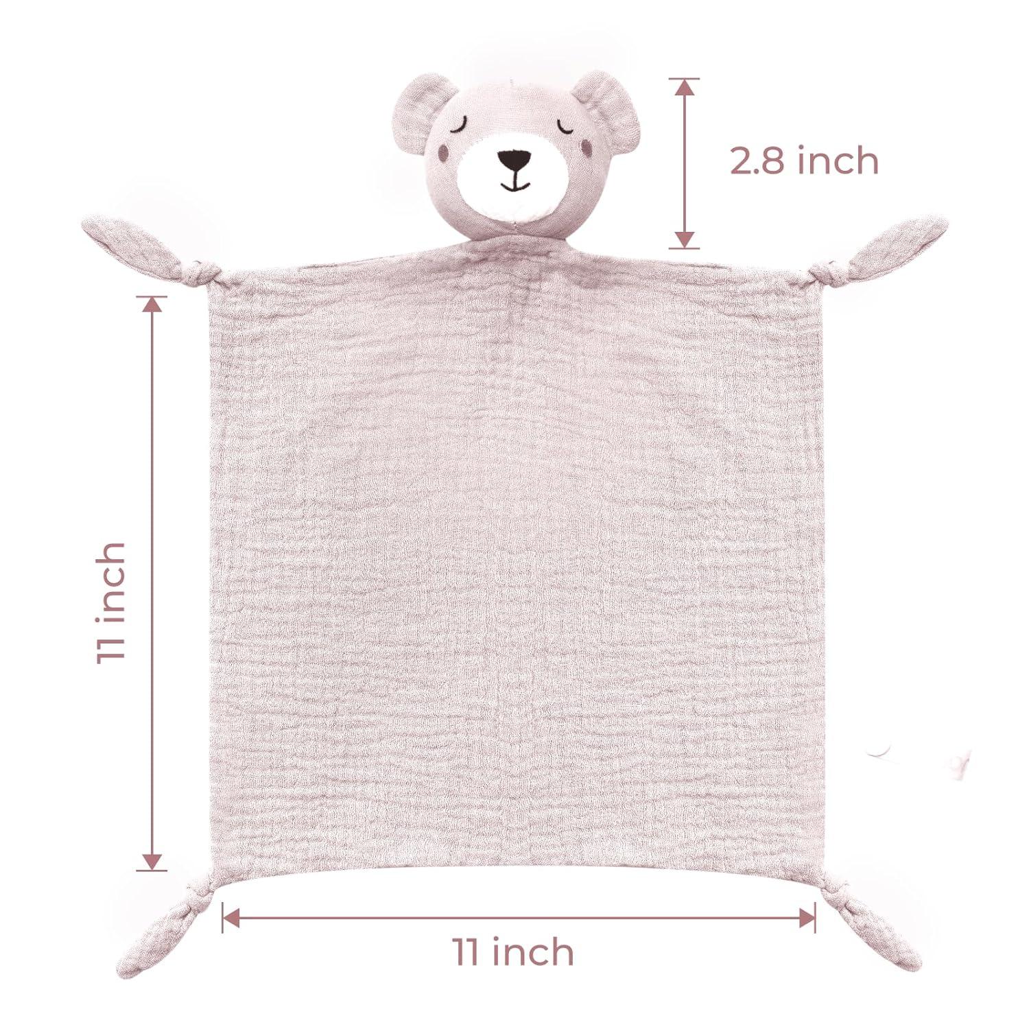 [ Best Developmental Companion] Measuring 11 x 11 inches with a lightweight and portable design, it's ideal for tiny hands to grasp. The adorable animal face stimulates visual tracking while the muslin textured encourages tactile exploration, supporting sensory development from newborn to toddler