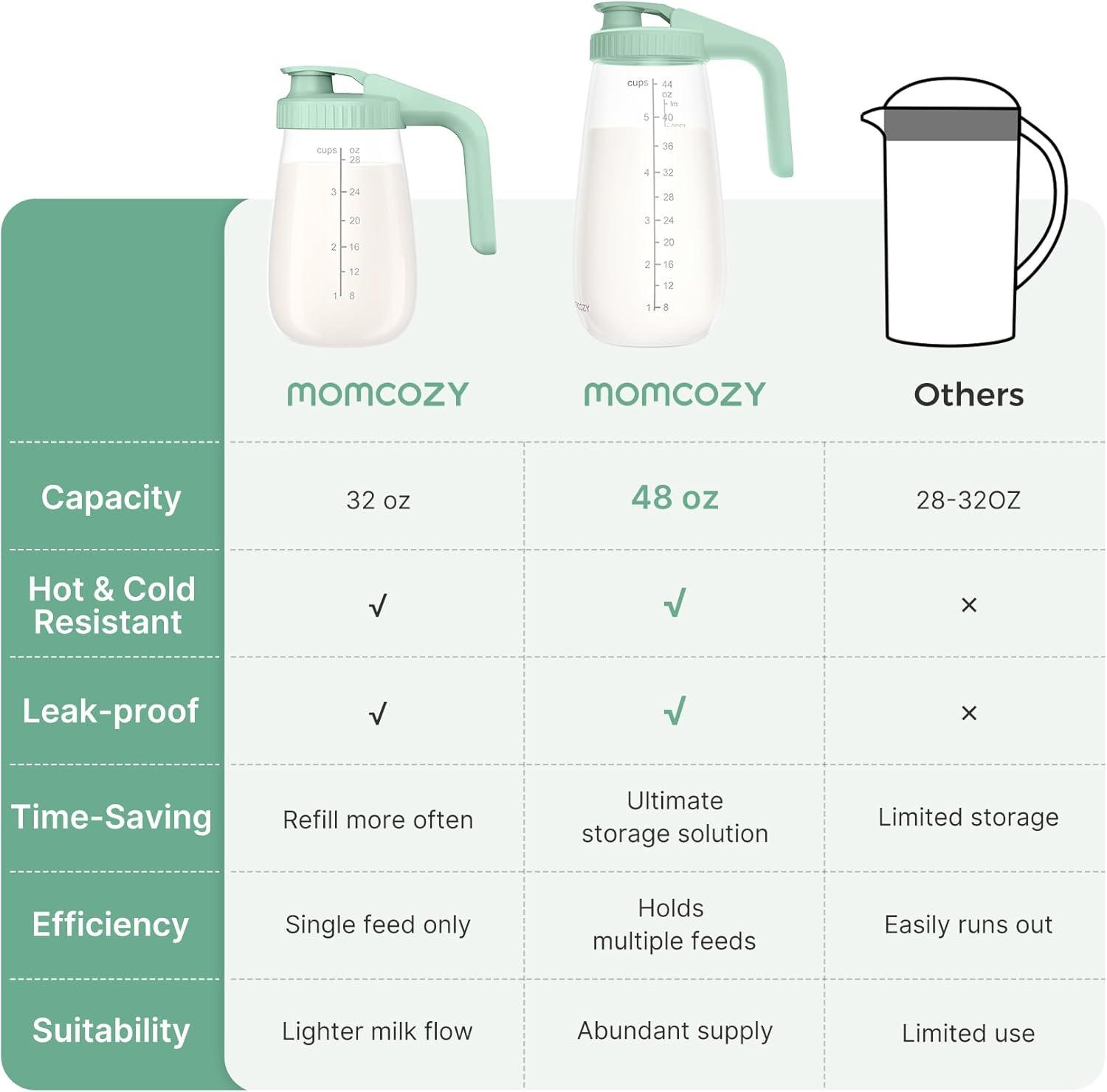Extra-large 48oz capacity for fewer refills and more convenience. One pitcher holds up to 48oz, meaning fewer transfers, less cleaning, and more time saved for busy moms.