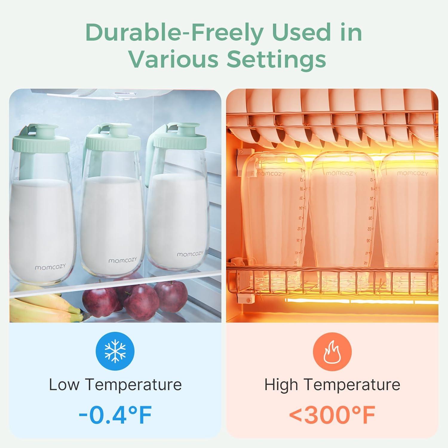 Durable and safe. Made of high-grade borosilicate glass, it resists sudden temperature changes from fridge to hot sterilization, and is made with food-grade, BPA-free material for safe storage.