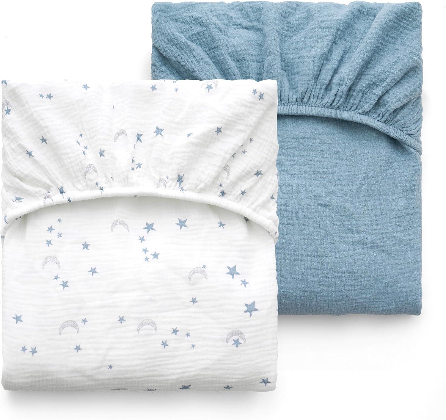imageMomcozy Muslin Standard Fitted Crib Sheets 52quotx28quot 2 Pack Soft Breathable Natural Cotton Baby Mattress Sheet 360 Mattress Wrapping No Slip Boys Girls Neutral Toddler Bed Sheet Bravery ZebraBlue Star Moon