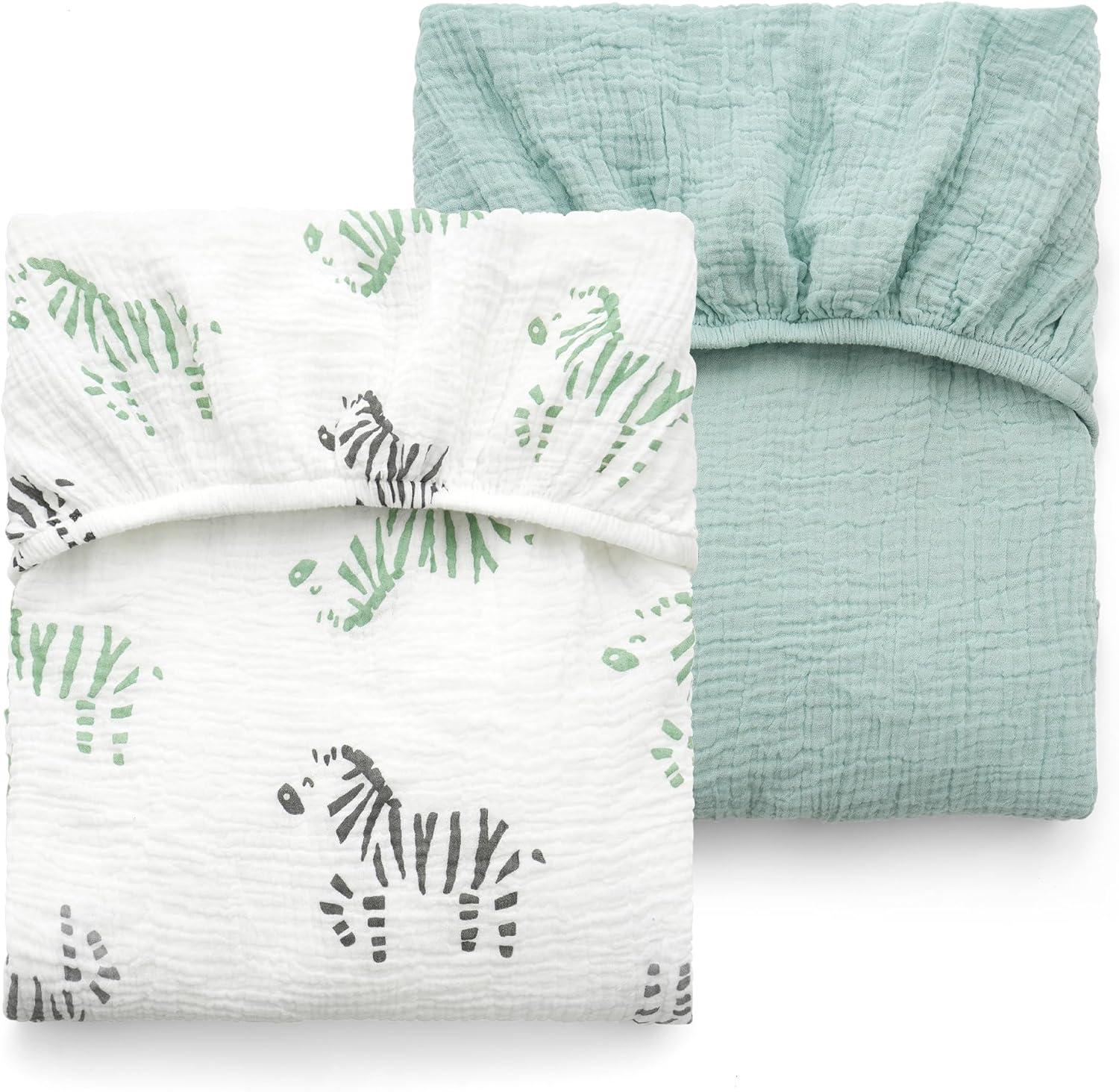Momcozy Muslin Standard Fitted Crib Sheets, 52"x28", 2 Pack Soft Breathable Natural Cotton Baby Mattress Sheet, 360° Mattress Wrapping No Slip Boys Girls Neutral Toddler Bed Sheet, Bravery Zebra(Bravery Zebra)