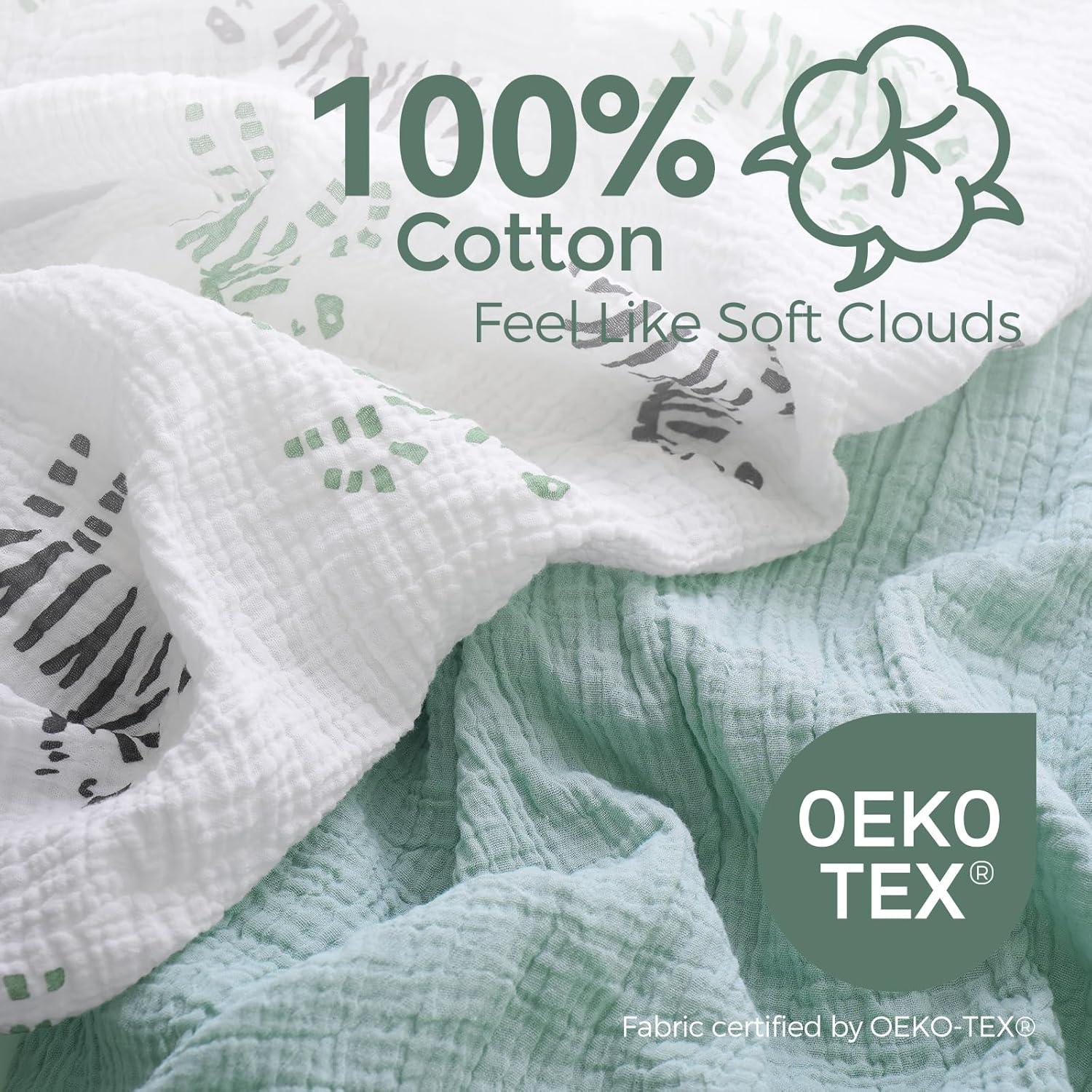 【100% Cotton, Quality and Softness All Around】Momcozy practical toddler ultra soft muslin fitted crib sheets are 100% made from quality American natural cotton, which is friendly for baby delicate skin. No weird odors or blurred designs, gentle and cushy cotton crib sheet provides a comfortable surface and a safe sleeping environment for babies helping soothe your newborn and keeping them calm when they are in sleep.