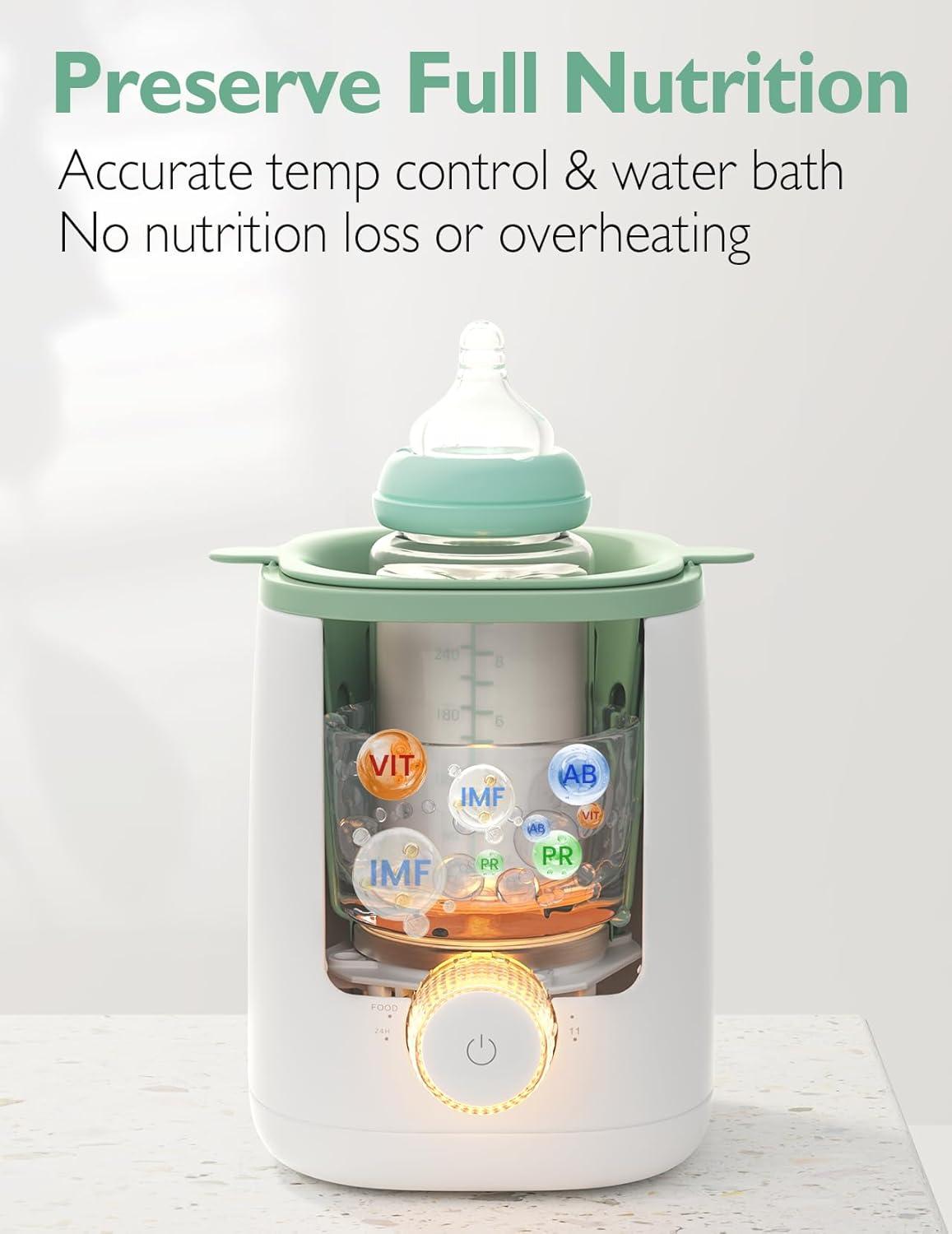Accurate Warm the Full Nutrients: Momcozy nutri baby bottle warmer refuses to heat the breast milk to a too-high temperature, instead with the gentle water bath heat to preserve the fullest nutrients in breast milk for greater baby’s digestion and growth.