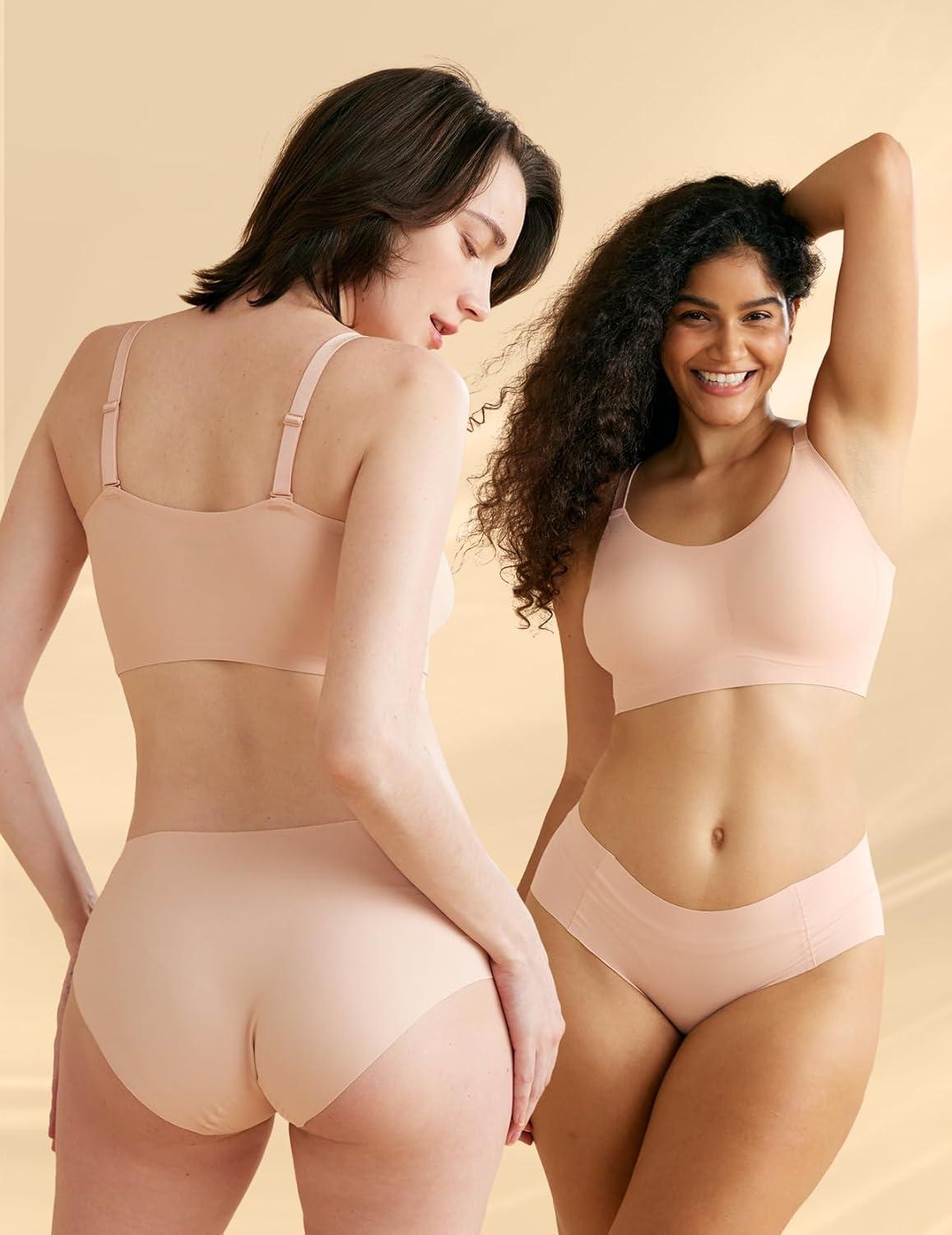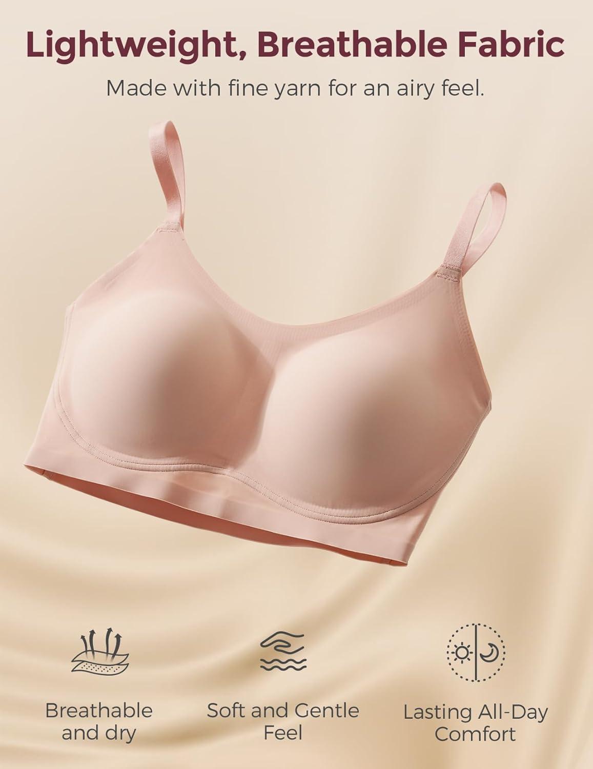 Momcozy Seamless Bra for Women, 3.0 Jelly Strip Lifting Wireless Bra with Breathable Perforations(Oyster Pink)