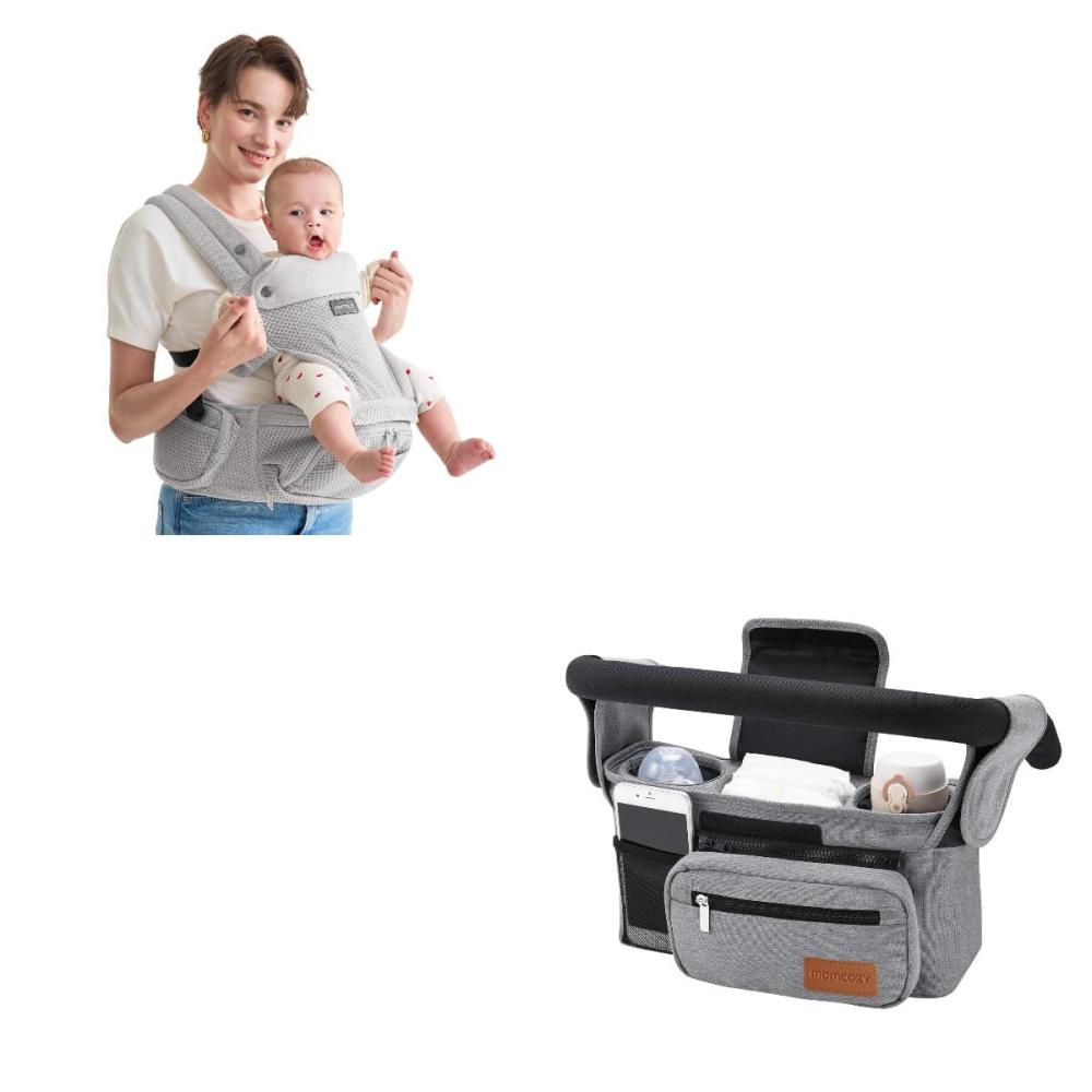 Momcozy Universal Stroller Organizer Baby Carrier with Hip Seat, Grey