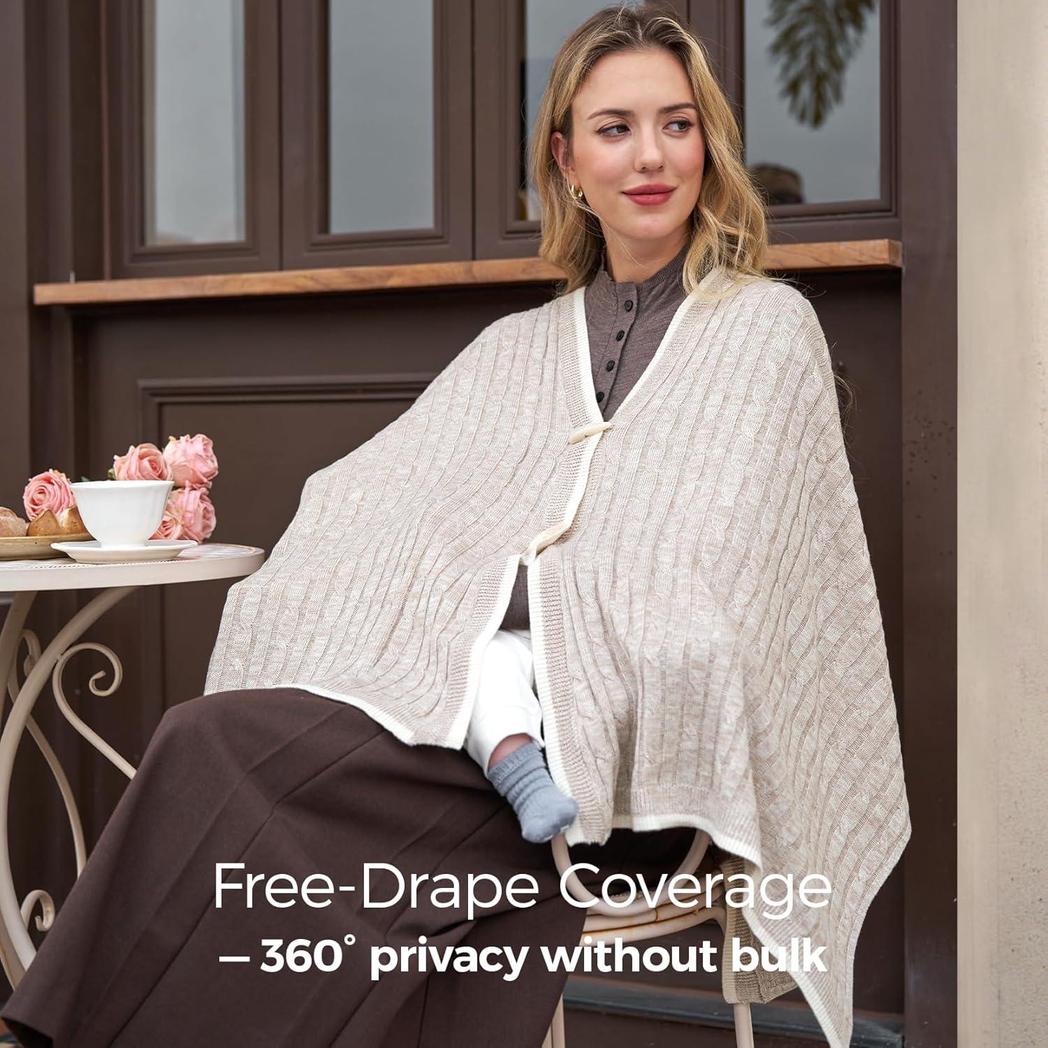 Shawl-Like Style: More than just a nursing cover, this versatile piece doubles as a chic shawl. The stylish poncho design adds elegance and comfort to your everyday wardrobe, whether at home or on-the-go.