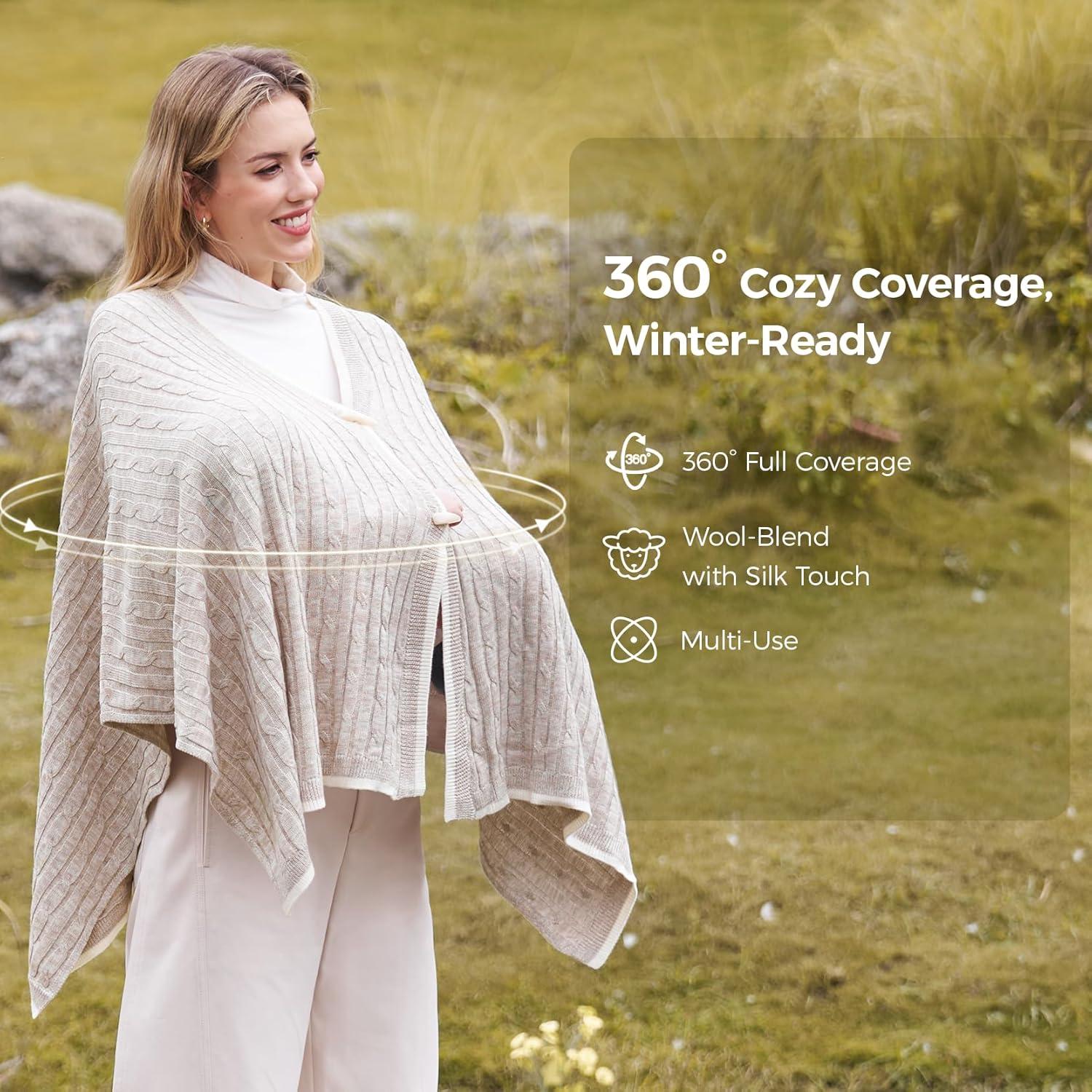 Ultimate Winter Warmth: Crafted from a silk-touch wool-blend fabric, including 2.5% wool, this nursing cover keeps both mom and baby cozy without bulk. Perfect for cold weather, it provides warmth and comfort all day long.